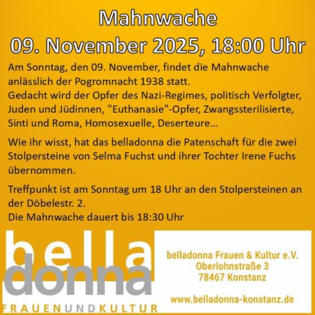 Am Sonntag, den 09. November, findet die Mahnwache anlässlich der Pogromnacht 1938 statt.